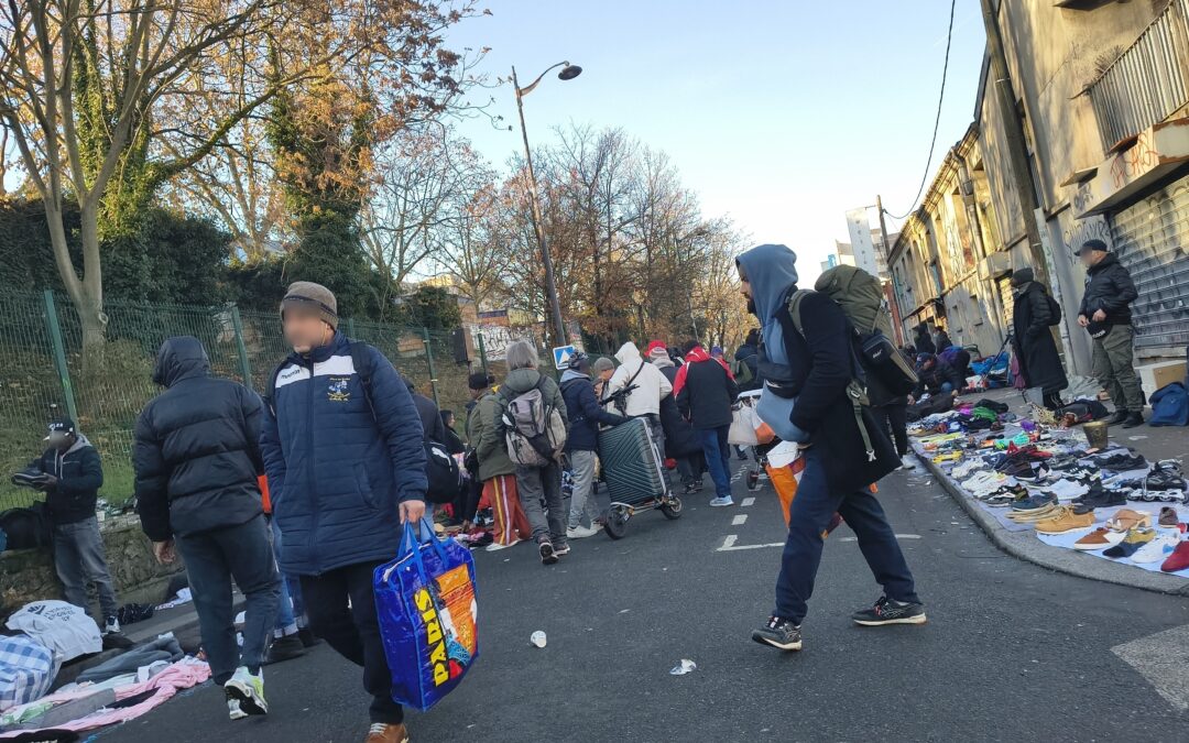 À deux pas des puces de Saint-Ouen, à la porte de Montmartre (XVIIIe), un marché clandestin s’étend chaque jour sous le périphérique. Des centaines de vendeurs à la sauvette déploient leurs étals de fortune sur les trottoirs : chaussettes dépareillées, pizzas décongelées et téléphones fêlés à même le trottoir. Bienvenue aux « puces de la misère ».